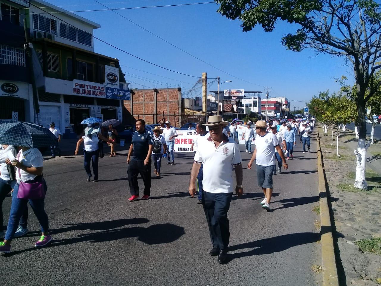 Esta mañana al menos mil maestros del Sindicato Nacional de Trabajadores de la Educación (SNTE) marcharon en Lázaro Cárdenas para exigir al gobierno del estado les paguen el adeudo de sus honorarios.