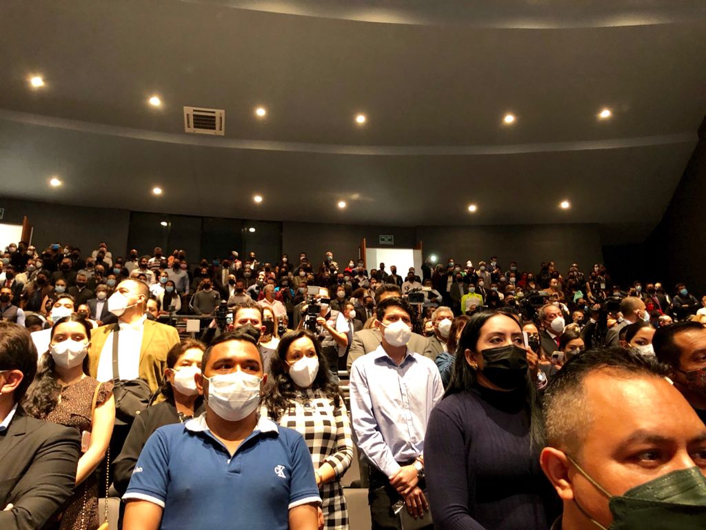 Desde la primera fila del teatro, el gobernador electo agradeció el espaldarazo que le otorgó de manera clara Juan Antonio Ixtláhuac.