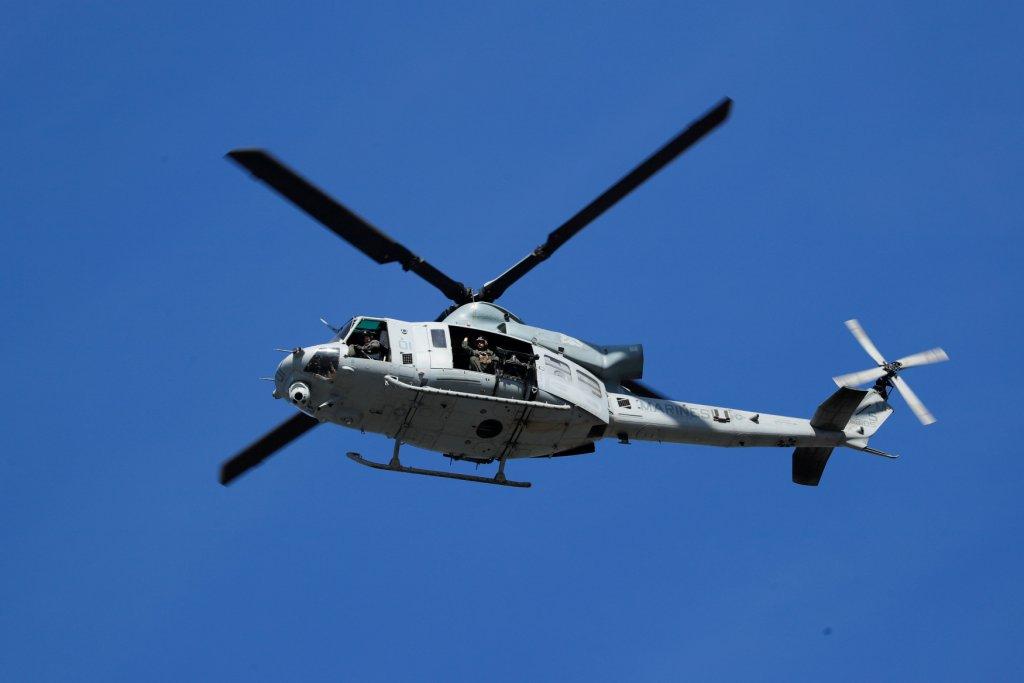 Un helicóptero de la seguridad fronteriza de Estados Unidos sobrevuela la frontera.