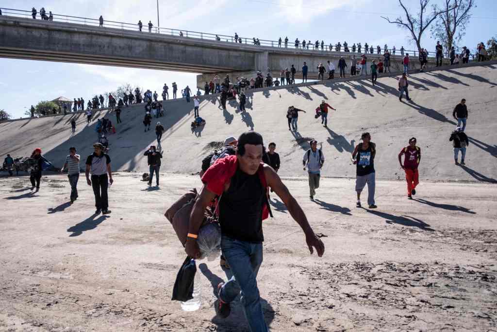 En el puente El Chaparral, situado a por lo menos tres kilómetros de distancia de EU, los centroamericanos rompieron filas y empezaron a correr con rumbo al Canal del Río Tijuana, muy cercano a la garita de San Ysidro, California, tomando por sorpresa a los agentes federales.