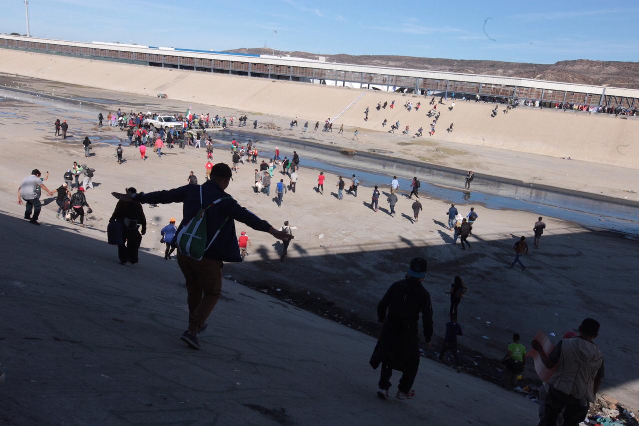Al menos 500 migrantes que participaban en una manifestación desde el albergue en el que están unos 5 mil centroamericanos se separaron de la marcha y se lanzaron, sin éxito, hacia la línea fronteriza de Estados Unidos.