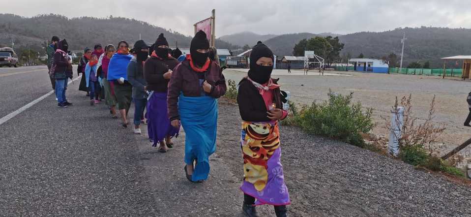 Las mujeres salieron de sus hogares, con pasamontañas, rostros cubiertos y bordados con la leyenda del EZLN, para unirse a todas las mujeres del país, en la exigencia del alto a la violencia.
