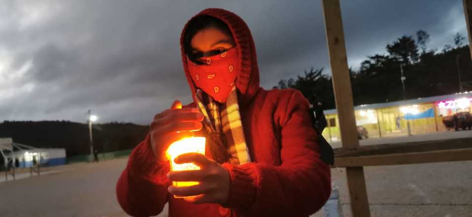 Cerca de las 5:00 horas, con veladoras en mano, salieron de sus hogares para gritar consignas en la Carretera Internacional Comitán-San Cristóbal de las Casas y exigir un alto a la violencia de género.