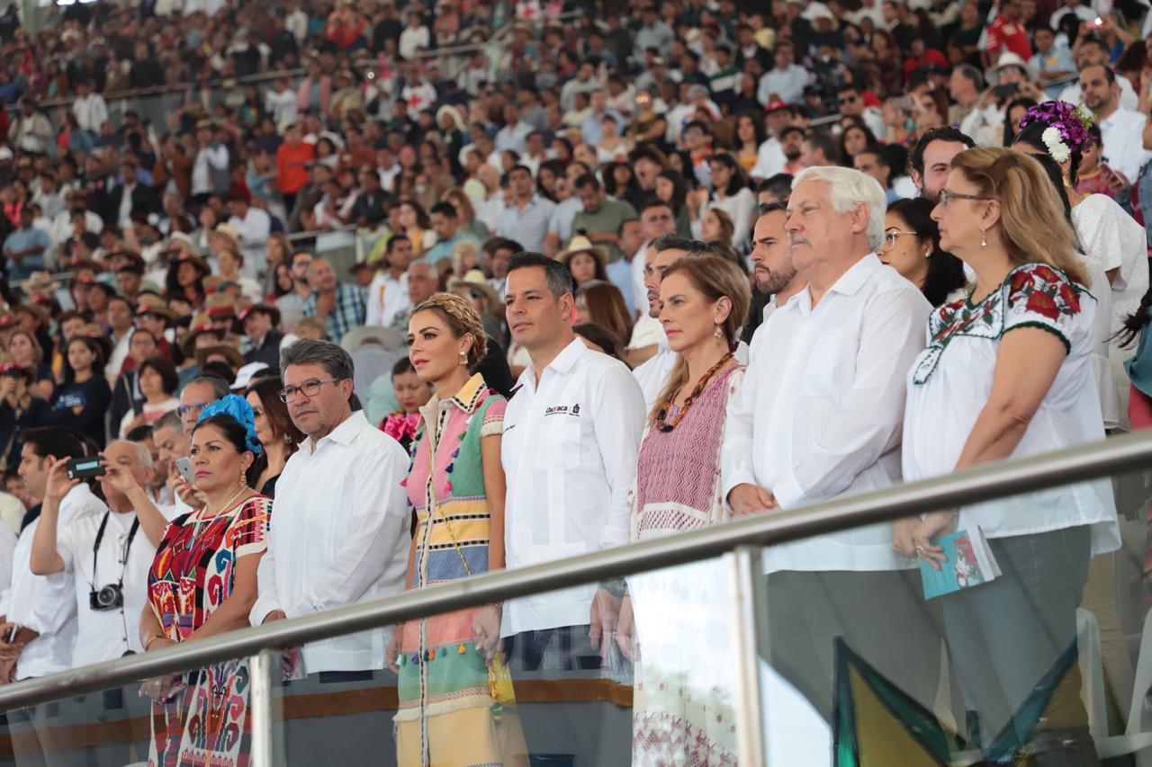 A la ceremonia llegaron más de 15 mil personas. También asistieron el coordinador de Morena en el Senado, Ricardo Monreal, y el secretario de Agricultura a nivel federal, Víctor Villalobos, quienes fueron invitados por el gobernador Alejandro Murat.