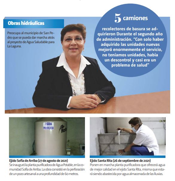 “No hubo grandes obras, aquí muchas de las obras que se realizaron fue en mejorar los pozos para la extracción de agua, se mejoró el drenaje, obras que no se ven, mejoras en horario y suministro de agua potable, otro de los aciertos fue clausurar las tomas clandestinas”.
