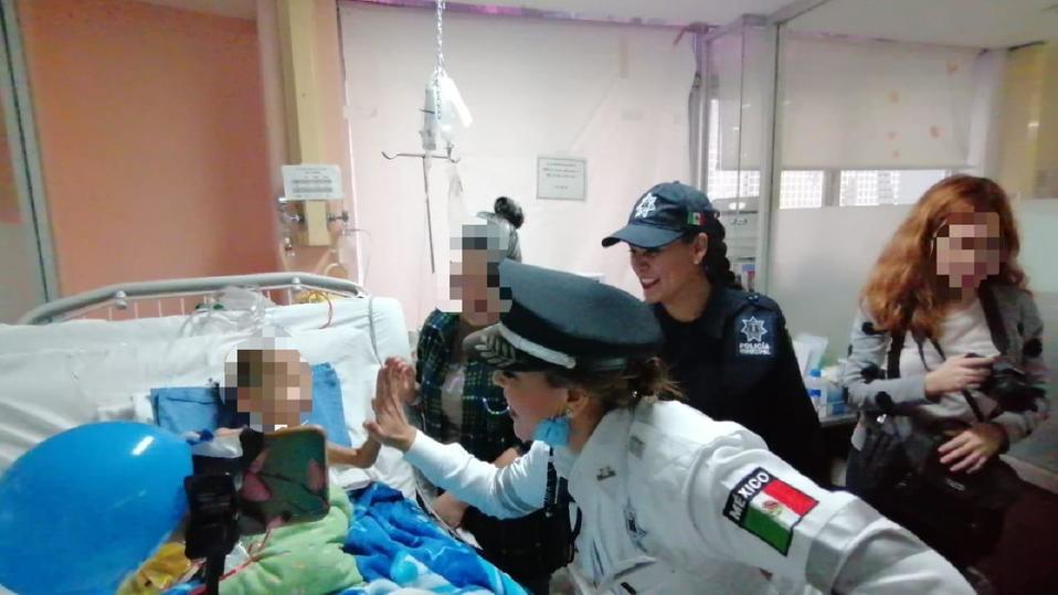 Los elementos pasaron cama por cama saludando a cada uno de los menores regalándoles una tarjeta navideña y una bolsa de dulces, platicaron con ellos y sus padres, y les desearon una pronta recuperación