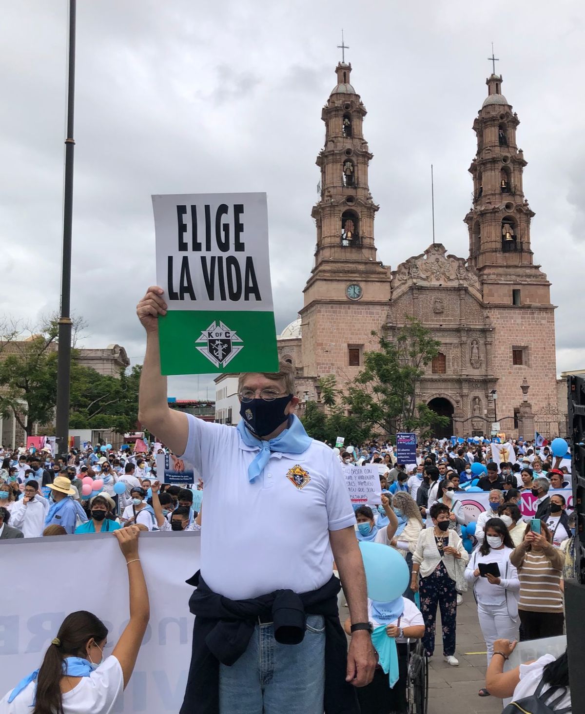 En Aguascalientes, cerca de 2 mil personas de grupos a favor de la vida marcharon a partir de las 11:00 de la calle Cosío para llegar al centro de la Plaza de Armas a las afueras de la catedral frente al Palacio de Gobierno del estado