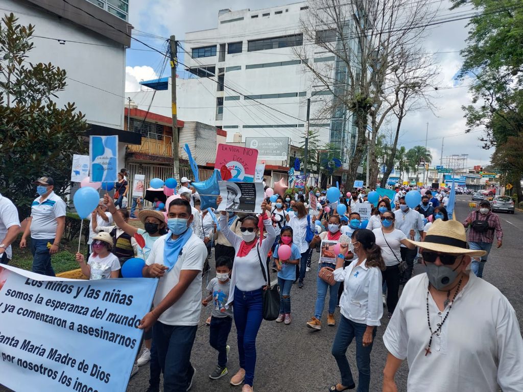 Grupos laicos de diversas agrupaciones religiosas así como organismos no gubernamentales en defensa de la vida marcharon de blanco con globos azules, rosas y blancos, para demandar el respeto y protección al no nacido y a la familia.