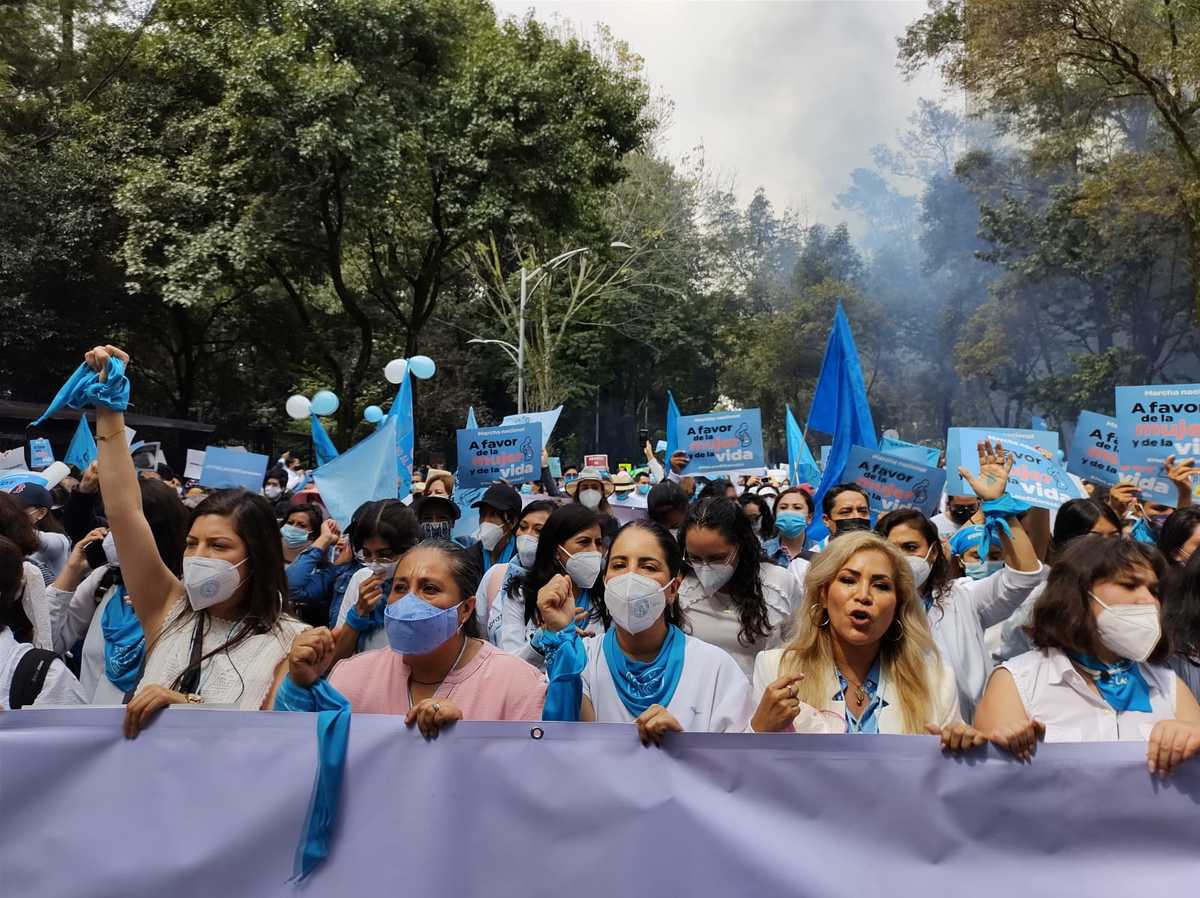 En la capital del país, cientos de personas reunidas afuera del Auditorio Nacional realizan una marcha "a favor de la mujer y la vida", la cual fue convocada por redes sociales.