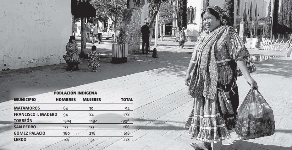 Respecto a los datos de población indígena en la ZML, esta es de 4,430 (2,319 hombres y 2,111 mujeres), siendo Torreón el municipio con mayor representación.