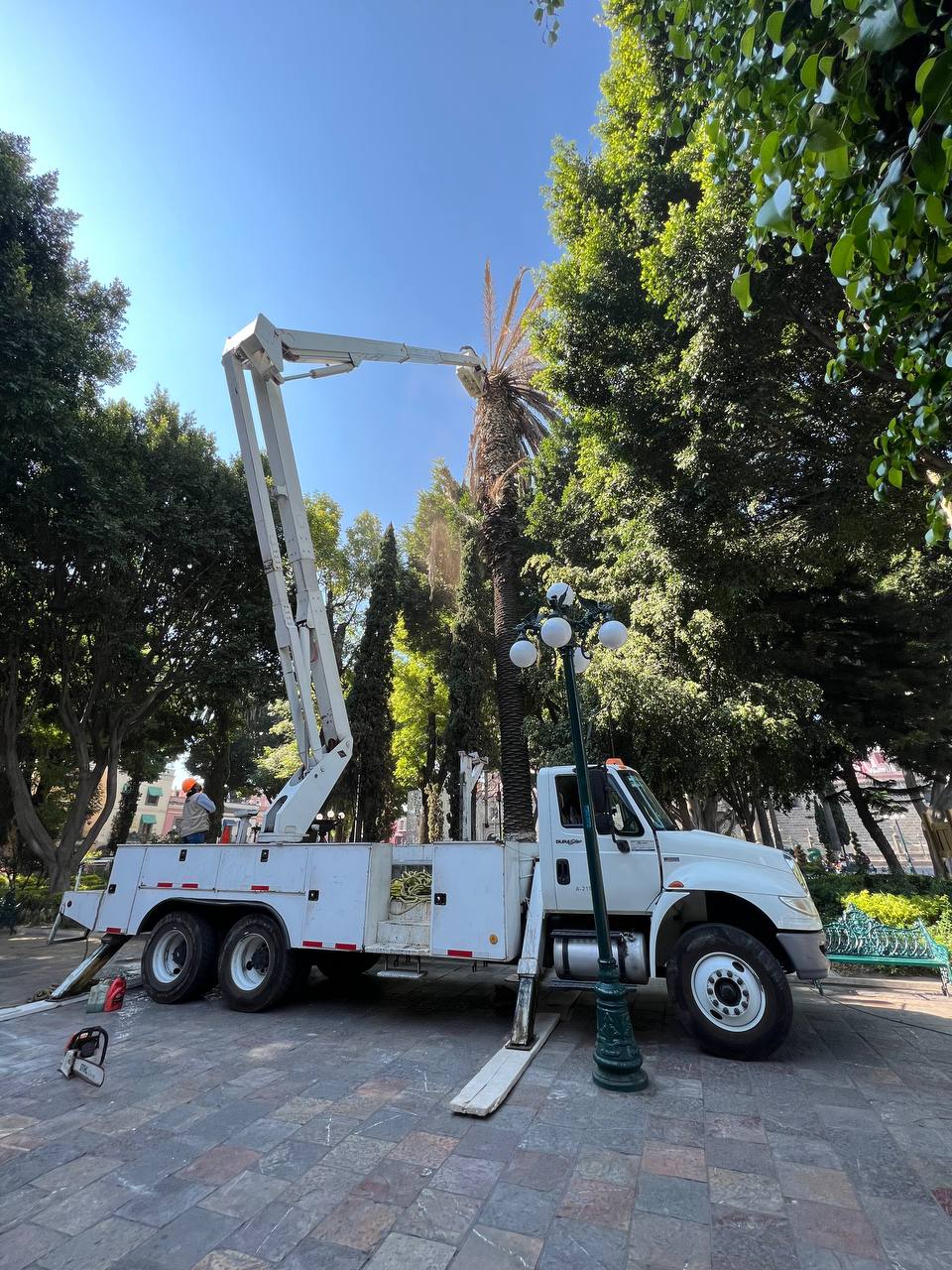El ayuntamiento de Puebla realizó el retiro de una palmera ubicada en el Zócalo de la ciudad; ello derivado de un diagnóstico y tratamiento fitosanitario para el arbolado del municipio.