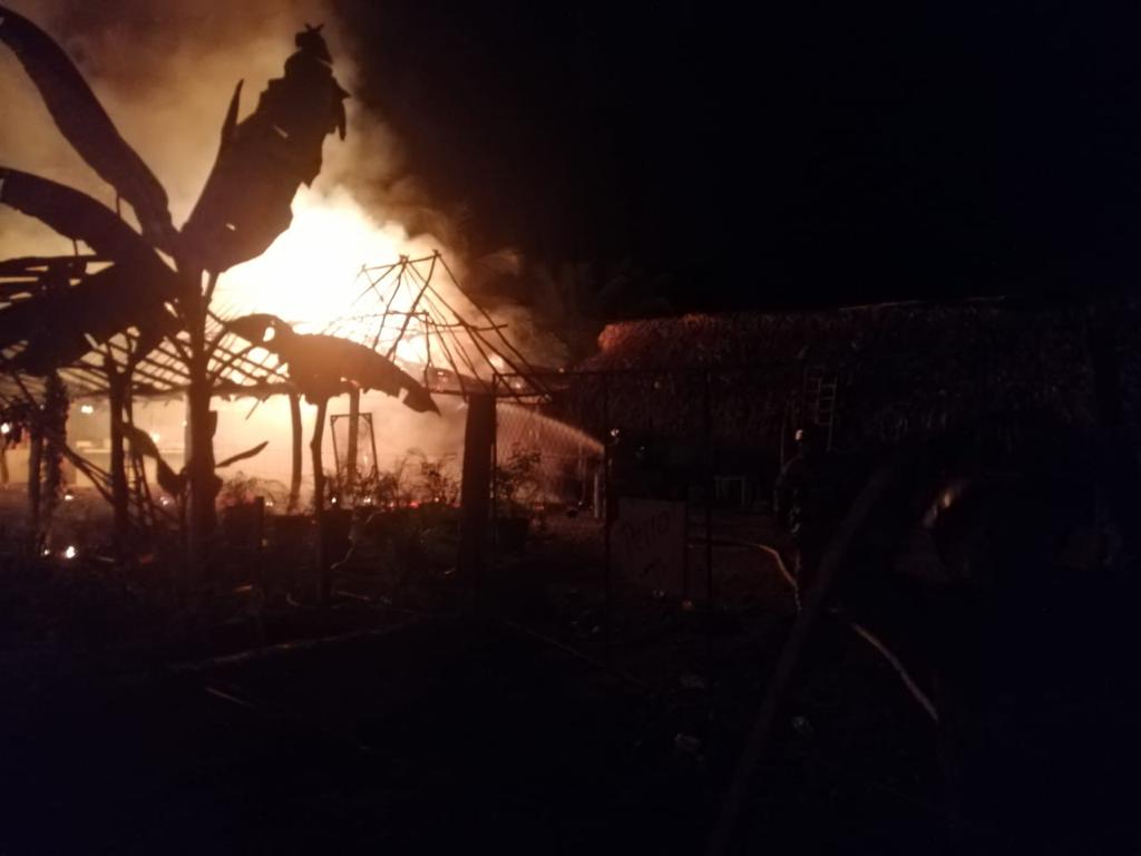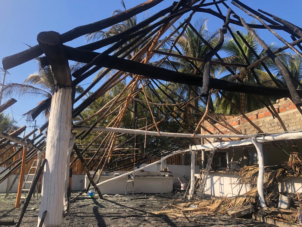Estaba a cinco kilómetros del lugar cuando alcanzó a ver una humareda. Cuando se bajó de su coche vio en llamas sus dos pequeñas palapas de 20x20 que duró un año acondicionando y que le habían costado unos 200 mil pesos. Había montado la cocina y tres palapas. “Quedó todo rostizado, solo los troncos”, dice.