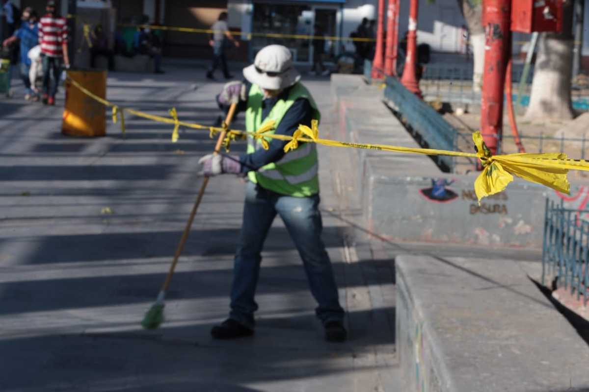 Y mientras los centros comerciales se encuentran cerrados, en el centro de la ciudad continúan instalados tianguis.