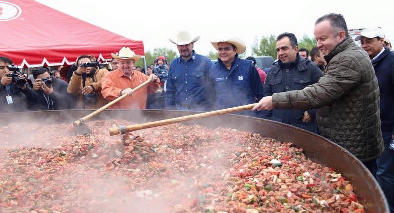 En su elaboración participaron más de 80 personas entre la población del lugar, estudiantes de gastronomía y personal del municipio, el platillo alcanzó una capacidad de mil 310 litros.