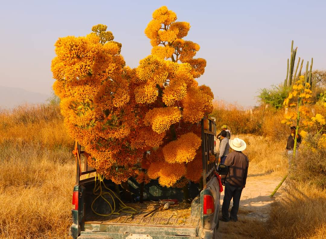 Para cortar las flores es un poco más difícil por encontrarse la población en la Reserva de la Biosfera Tehuacán-Cuicatlán, por eso es necesario contar con un permiso que dan los compadres, parientes y amigos, quienes les permiten buscar esta flor de amarillo intenso.