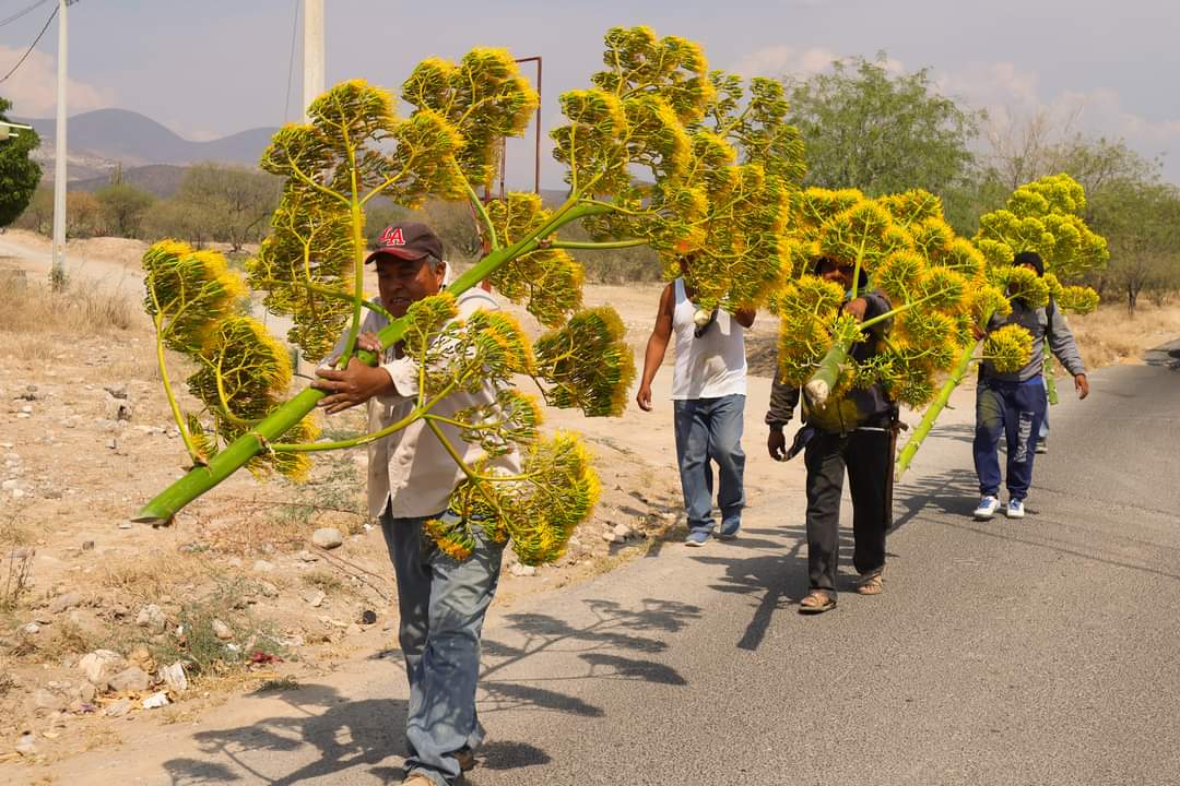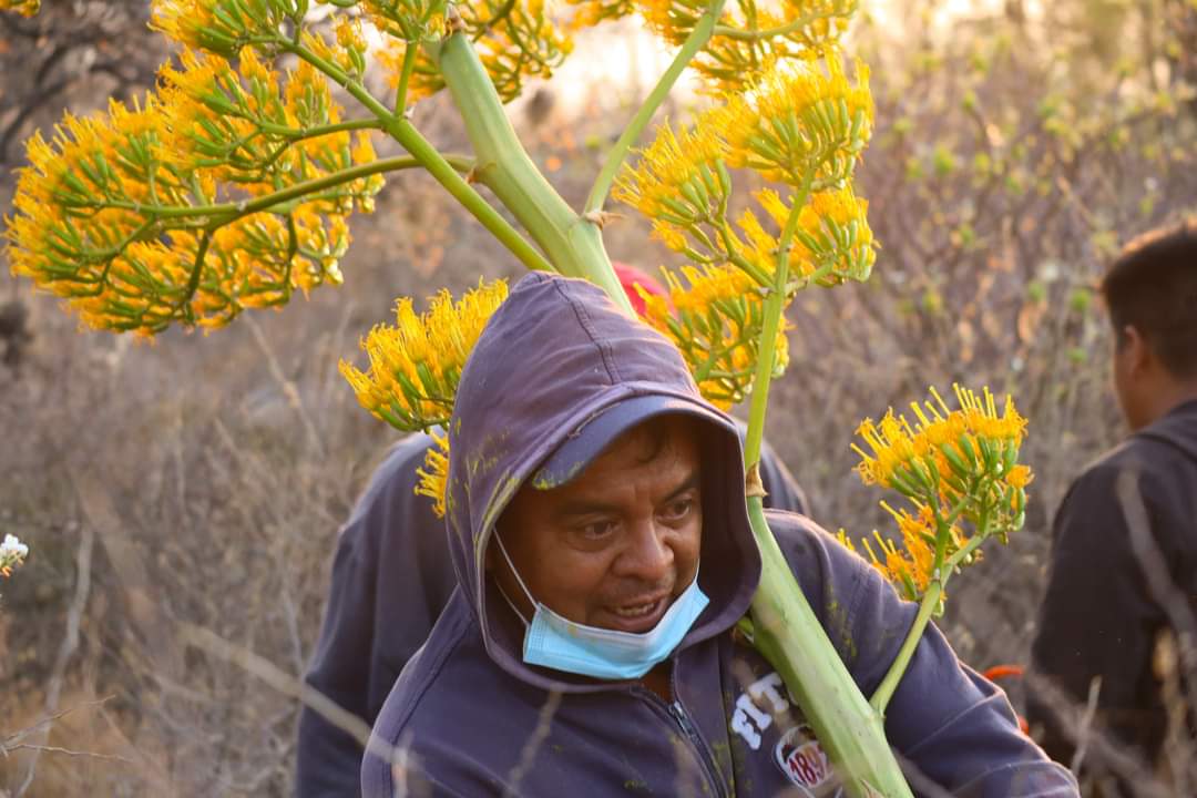 Un grupo de hombres de San Mateo Tlacoxcalco, salió la madrugada de este jueves de sus casas, caminaron poco más de cinco kilómetros para comenzar a recolectar la Kioxochme (flor del maguey) que en estas fechas adorna el campo y que son llevadas al templo de la población para embellecer el altar del Padre Jesús.