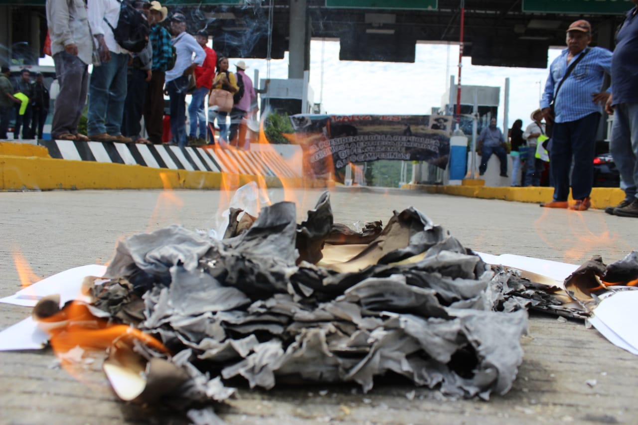Campesinos de la región Montaña y zona Centro de Guerrero, tomaron la caseta de Palo Blanco, en la Autopista del Sol y quemaron 500 vales del programa de fertilizante, pues señalaron que nunca sirvieron para que el insumo llegara a sus tierras.