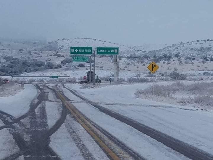 Las nevadas provocaron el cierre de carreteras en el noreste de Sonora y el noroeste de Chihuahua.