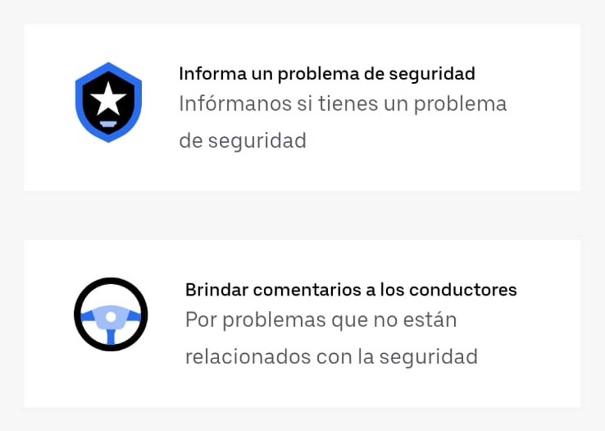 Una vez finalizado el trayecto Uber también ofrece la opción de 'Informar un problema de seguridad' si durante el viaje tuviste un inconveniente, además, en configuración puedes elegir: