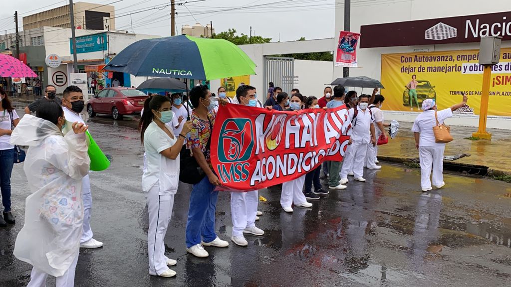Trabajadores del Centro Médico Adolfo Ruiz Cortines del Instituto Mexicano del Seguro Social (IMSS) en Veracruz se manifestaron esta mañana, para demandar que reparen el equipo de aire acondicionado.