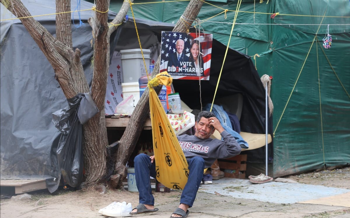 Duermen en casas improvisadas hechas de bolsas de plástico negro o casas de campaña. Comparten baños portátiles, su ropa la lavan en lavaderos colectivos, se bañan en regaderas publicas o algunos a jicarazos. Son migrantes centroamericanos que llevan año y medio viviendo en la frontera entre Tamaulipas, México y Texas, Estados Unidos.
