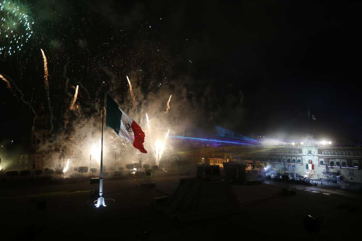 Con fuegos artificiales, luces y huapangos, iluminando la bandera de México, terminó la ceremonia del Grito.