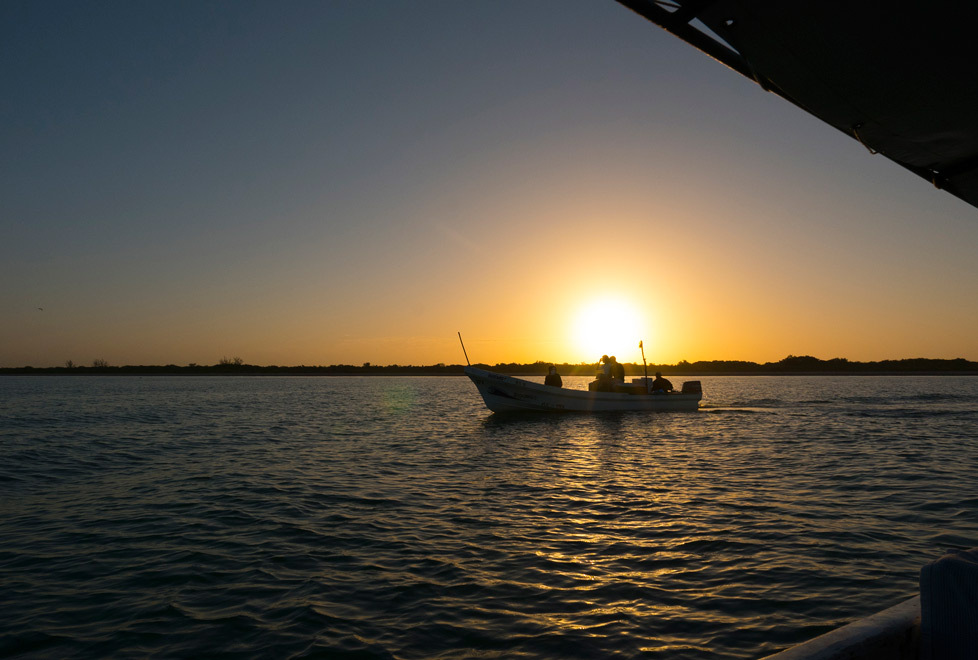 Aquí, la primera parada es un pintoresco puente blanco, que es parte del muelle, en donde te podrás embarcar en un pequeño bote y salir en busca de los flamencos. Con un poco de suerte, en esta época podrás apreciar entre 400 y 600 animales de esta especie, mientras que en la temporada alta de diciembre a marzo se concentran hasta 30,000.