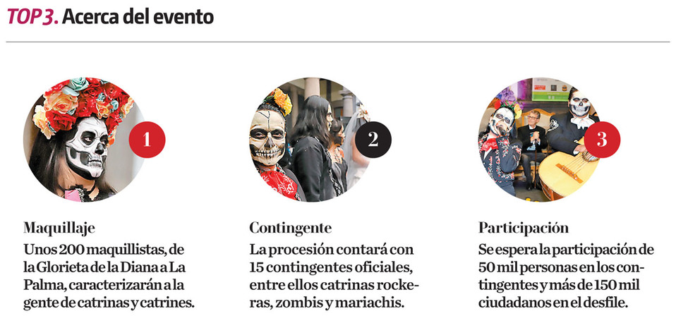 La sexta edición de la megaprocesión de las Catrinas será este sábado 26 de octubre y, como cada año, presentará vestuarios y maquillaje 100 por ciento mexicanos; en esta ocasión se celebra la alta costura con la participación de diseñadores como Jossy Javier y Eduardo Jiménez, y el uso de mezclilla.