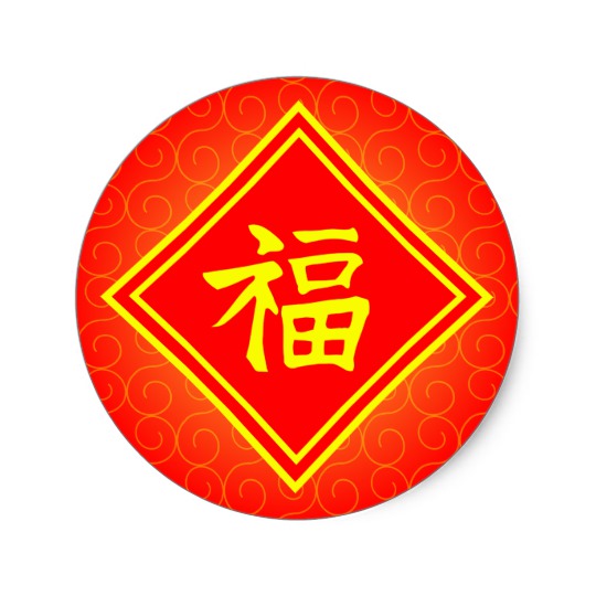 El protagonista de estas inscripciones es el carácter 'fu', que significa buena fortuna, y que también se ve escrito sobre papel recortado, enmarcado en un rombo de color rojo, muchas veces, colocado intencionadamente invertido.