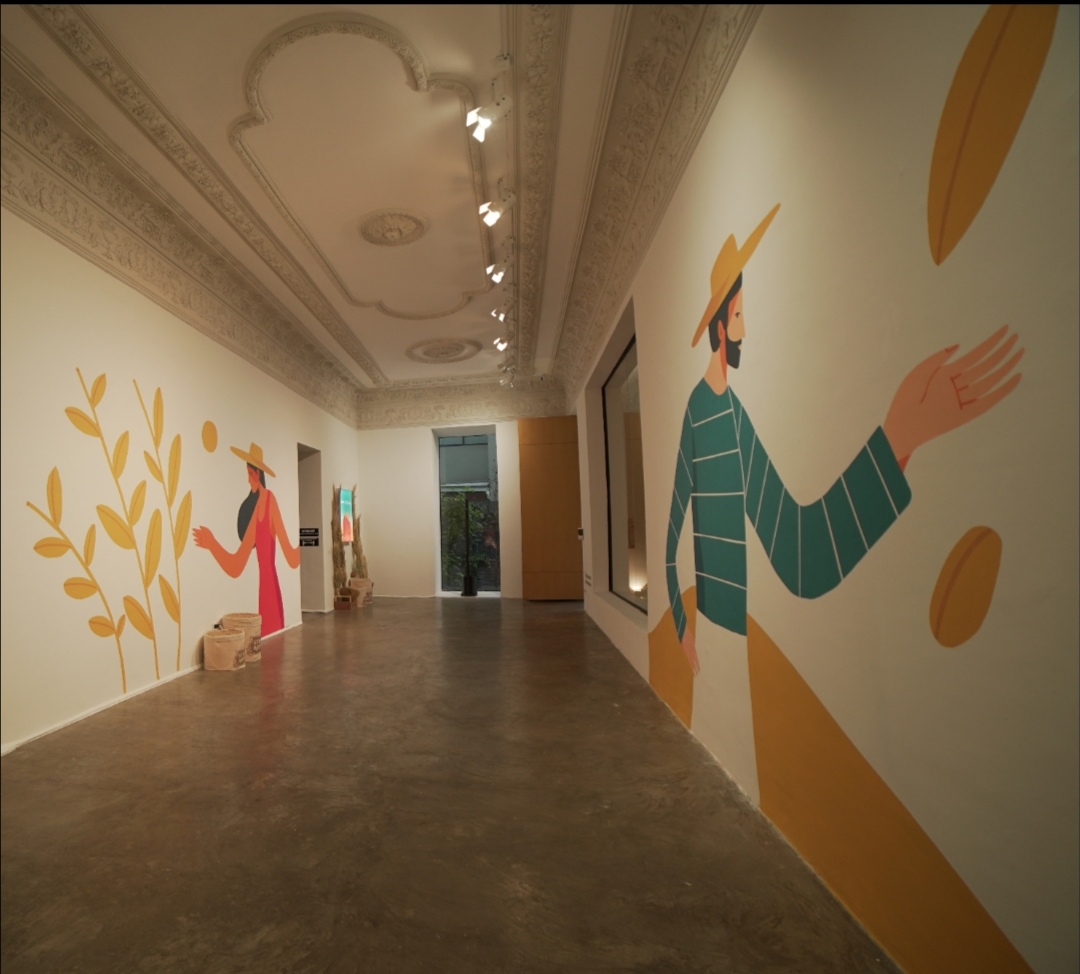 Como parte de la experiencia también se aprecia el trabajo del colectivo Estudio Infanta, un grupo de mujeres mexicanas centradas en contar historias por medios de audiovisuales, en especial la animación y la ilustración. Aquí su aportación se advierte a través de las pinturas que reflejan la labor de los campesinos en la cosecha del trigo.