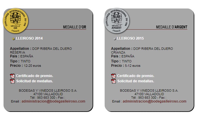 Bodegas Lleiroso obtuvo las medallas de oro y plata en la edición 2019 del Challenge Internacional du Vin por sus vinos Reserva 2014 y Crianza 2015.