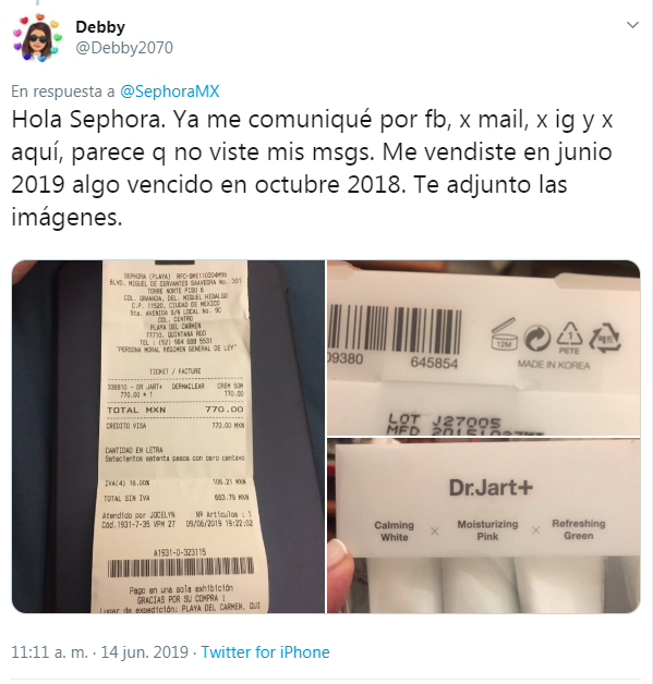 En sus mensajes, las usuarias adjuntaron fotografías de sus tickets de compra y la fecha de caducidad de los productos, que expiraron el año pasado. Además de eso, algunas se quejaron de que sus cosméticos estaban defectuosos y en algunos casos, especialmente en los de las compras en línea, estaban vacíos.
