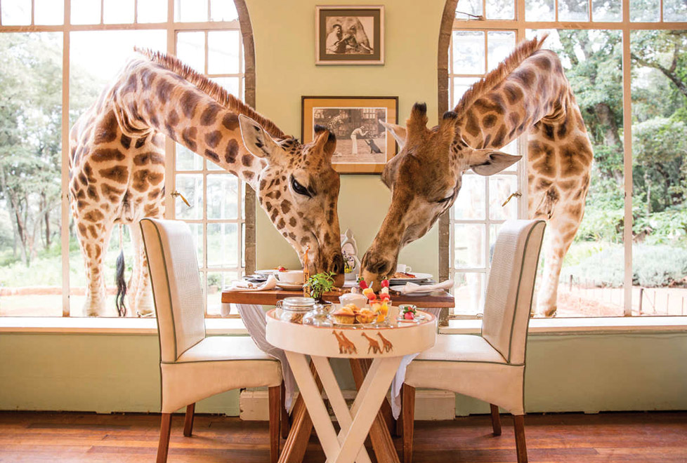 Desde 1930, cuando los visitantes europeos llegaron por primera vez para disfrutar de safaris, ha sorprendido a sus huéspedes con su fachada, elegante interior, jardines, terrazas y patios. Pero su mayor atractivo es el rebaño de jirafas de Rothschild residentes que visitan libremente el hotel y tienen permitido asomar sus cuellos por las enormes ventanas, siempre esperando un snack a cambio, antes de volver a su santuario en el bosque. Es así como podrás disfrutar de tu desayuno mientras un enorme ejemplar te acompaña o simplemente pasa a saludar.