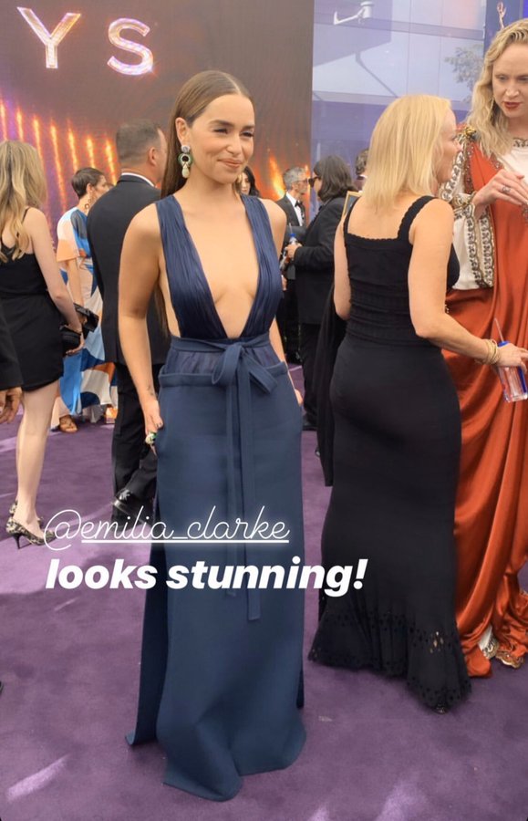 Previo a su llegada, Emilia Clarke publicó una foto en Instagram para compartir su look. Aprovechó para agradecer a Jennifer Lopez por inspirarla.