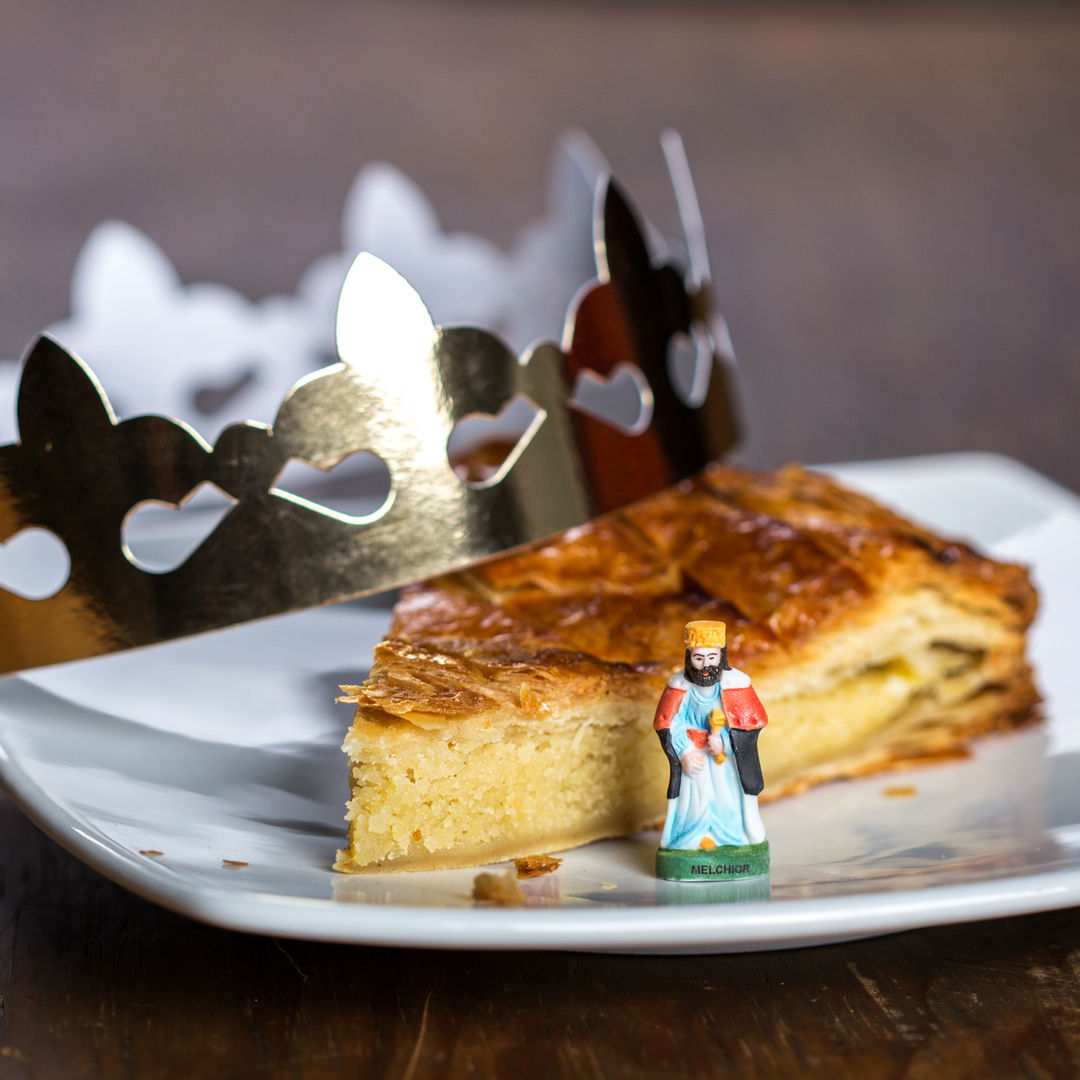 Con esa idea en mente, Frangipane elaboró una crema de almendras con el mismo perfume, y con ella se acostumbra rellenar la galette des rois. En Francia, a diferencia de lo que sucede actualmente con las roscas mexicanas, las galettes tiene un solo muñeco —“que habitualmente es de porcelana, una de las figuras del nacimiento”, aclara Chabre— e incluye una corona de cartón dorado, la cual será usada por la persona en cuya porción aparece la figura.