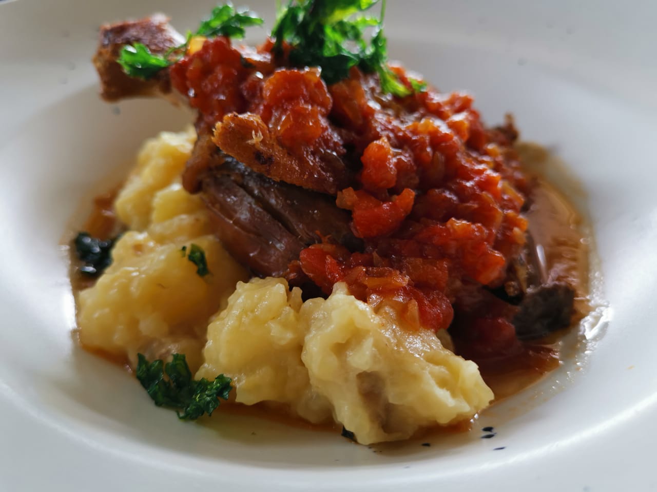 Como platos fuertes probé el pato confitado y el atún sellado en costra de chiles. Si eres fan de los sabores ahumados, este pato es una buena elección para ti, ya que la manera en la que está cocinado hace que la carne quede un poco tostada. Además, viene servido con salsa de jitomate y un puré de papa casero.