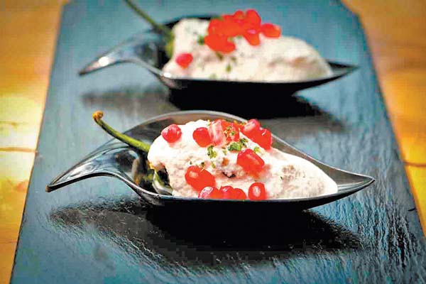 Explica que su versión no es tan dulce porque ha modificado algunos ingredientes, incluso el relleno lo prepara con tres carnes: “res 40%, cerdo 40% y carnero en un 20% para lograr un sabor diferente que se complementa con la nogada, a la que le damos un sello citadino al usar requesón en lugar de queso de cabra, y es ahí donde los sabores logran una preparación más mesurada de dulce”.