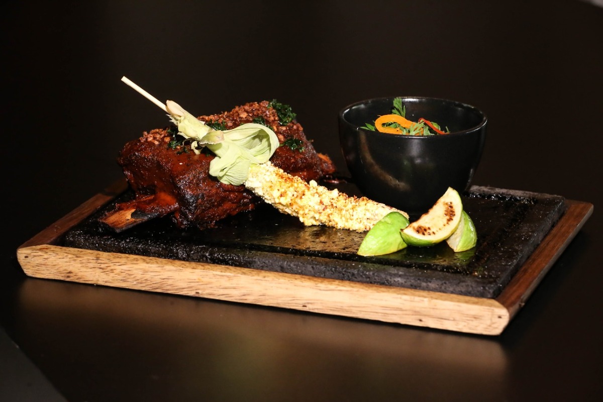 La carne se deshace en la boca. Y no solo es suave, sus sabores explotan en la boca con los diferentes toques; viene con un elotito cambray preparado al estilo de los elotes callejeros, que le da al paladar la sazón mexicana típica.