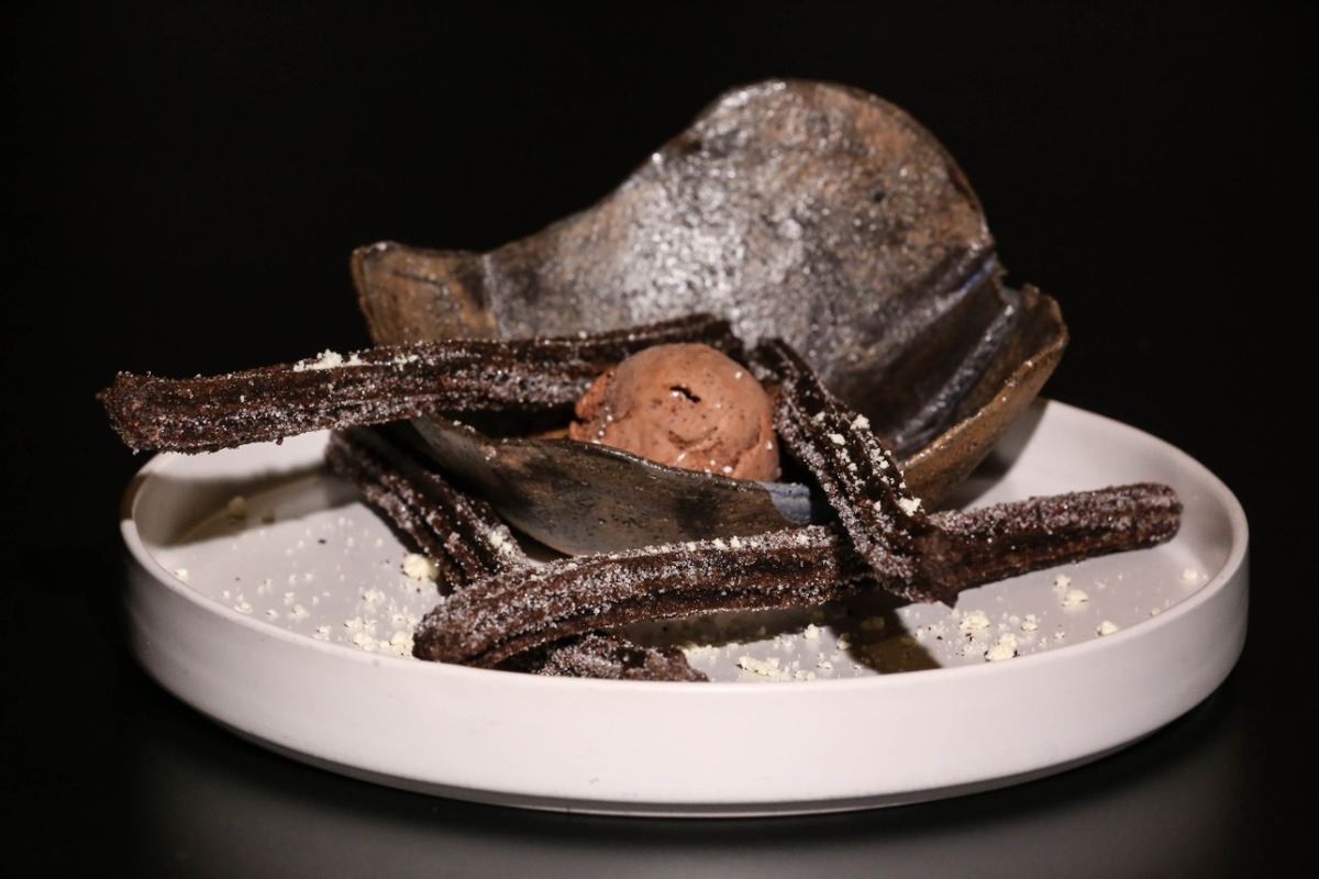 Cierran la escena los originales churros de cacao, que van con una salsa de plátano macho y chile ancho, y helado de tejate (bebida oaxaqueña de origen prehispánico).