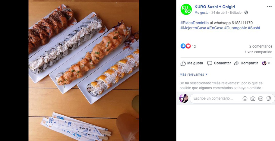 Mango con coco, arrachera y queso en rollos de sushi, o bien, vegetariano, su nuevo sabor, combinaciones que tienen más que ver con una traducción de Japón en Durango, así es el restaurante ‘Kuro’.