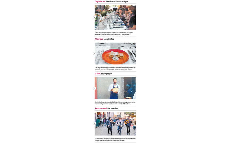 Hombres y mujeres que coinciden en la pasión que imprimen a sus actividades, pero sobre todo que comparten su inquietud por destacar las bellezas de San Miguel de Allende e ir más lejos, al generar experiencias de vida inolvidables, fue el tema de la Santísima Mesa que, por primera ocasión y en la emblemática calle Aldama, ofreció Érik Gallardo.