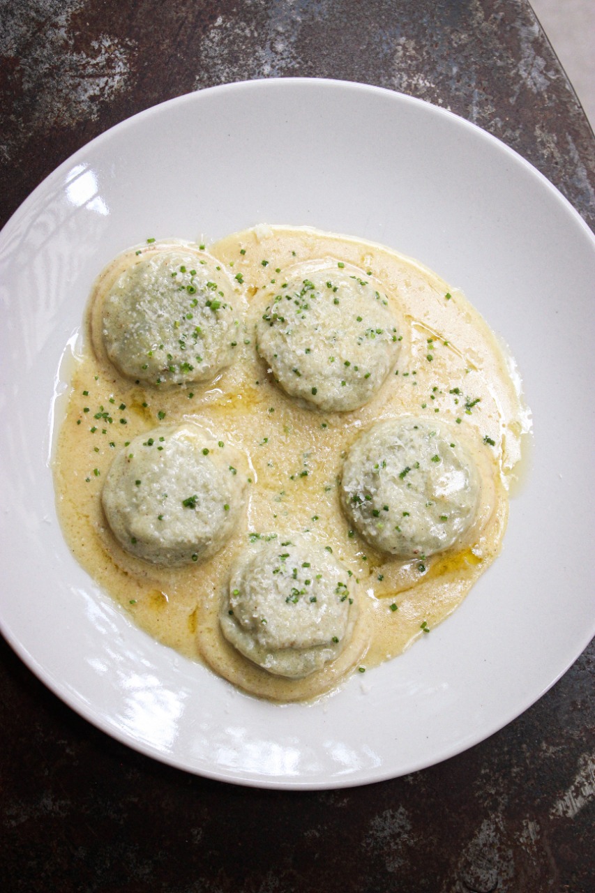 Esto no terminó ahí. Llegaron los fuertes: dos pollitos rostizados diferentes, unos sorrentinos de espinaca y una milanesa de res.