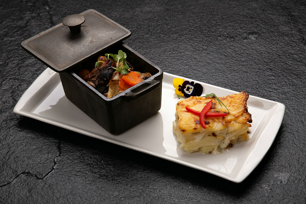 Para acompañarlo, se puede optar por papá al vapor o pasta, pero Chabre prefiere el Gratin dauphinois, que proviene de la región de los Alpes. “Es un gratin de papá con crema y ajo que se dora al horno; una delicia”, declara el chef francés.