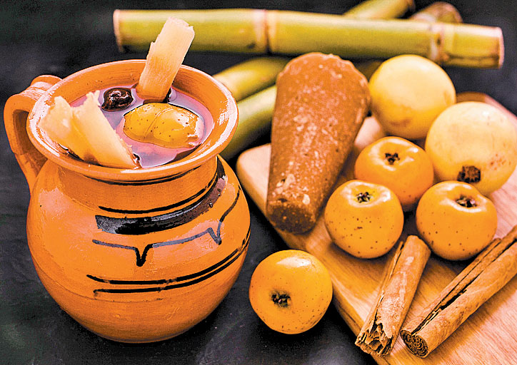Pelar la caña y cortar en tiras pequeñas. La manzana, guayaba y tejocotes (estos últimos se escalfan) van sin semilla. Todo se corta en gajos. Hacer jugo de mandarina. Mientras que la jamaica de se debe infusionar con agua caliente, durante cinco minutos y colar. Se hierven dos litros de agua con la canela y piloncillo, una vez deshecho éste, retirar la canela, agregar la caña y fruta. Tras hervir, se agrega el jugo de mandarina, la jamaica y la pulpa de tamarindo.