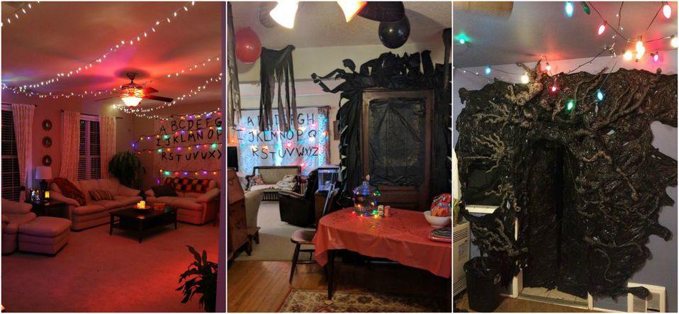 Puedes, por ejemplo, tomar una manta y pintar las palabras del abecedario y desempolvar tus luces navideñas para, con ayuda de tachuelas, colocarlas en tu sala. También podrías crear el portal al Upside Down con bolsas de basura negras, y un poco de cartón, papel Kraft o inlcuso papel crepé.