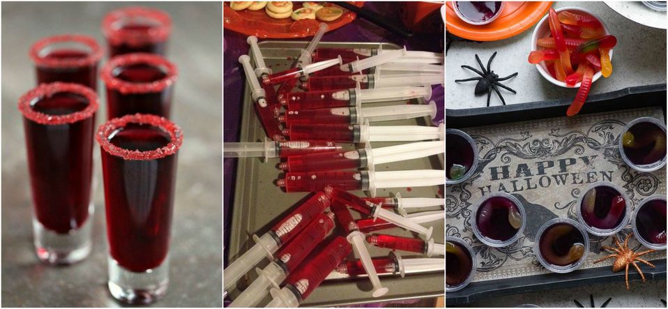 En tu fiesta, puedes preparar tragos de vodka o de alguna bebida incolora pero en vez de caballitos utilizar jeringas y añadirle una gotita de pintura vegetal roja o jugo de arándano, para que parezca sangre.