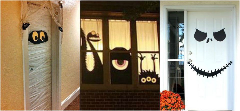Además puedes decorar tu puerta las columnas de tu casa o tus ventanas como momias o cualquier otro monstruo utilizando un poco de papel y poniéndoles ojos. Sea lo que hagas, no olvides sustituir la luz por una de colores oscuros.