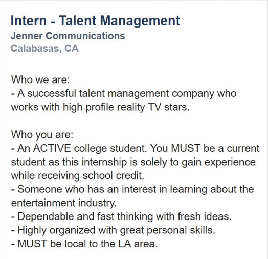 Y qué mejor que tener una carta de recomendación de las mismísimas Kardashians. Para tenerla, deberás estar dispuesto a trabajar ocho horas, sin sueldo y con algunas funciones dudosas, según la oferta de trabajo publicada por Jenner Communications (la compañía de las Kardashians),