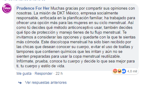 Ante las críticas, la marca de condones respondió que es decisión de cada mujer “el tipo de protección y manejo que tienes de tu flujo menstrual” y que sus copas era una opción para aquellas que querían probar el artículo.