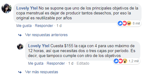 Por si fuera poco, su precio no se compara en nada con el resto de las copas menstruales. Mientras que la caja con cuatro desechables –que en teoría te serviría para dos días- cuesta 155 pesos, una copa que dura hasta 10 años puede alcanzar los 650 pesos.
